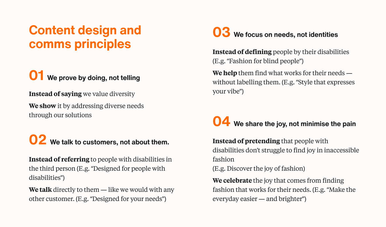 We started by educating ourselves: talking to users, disabled-owned brands and disability inclusion consultants.